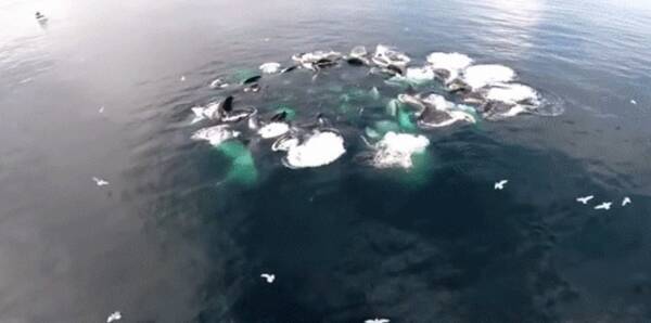 ザトウクジラのバブルネットフィーディング おもしろgifニュージェイ